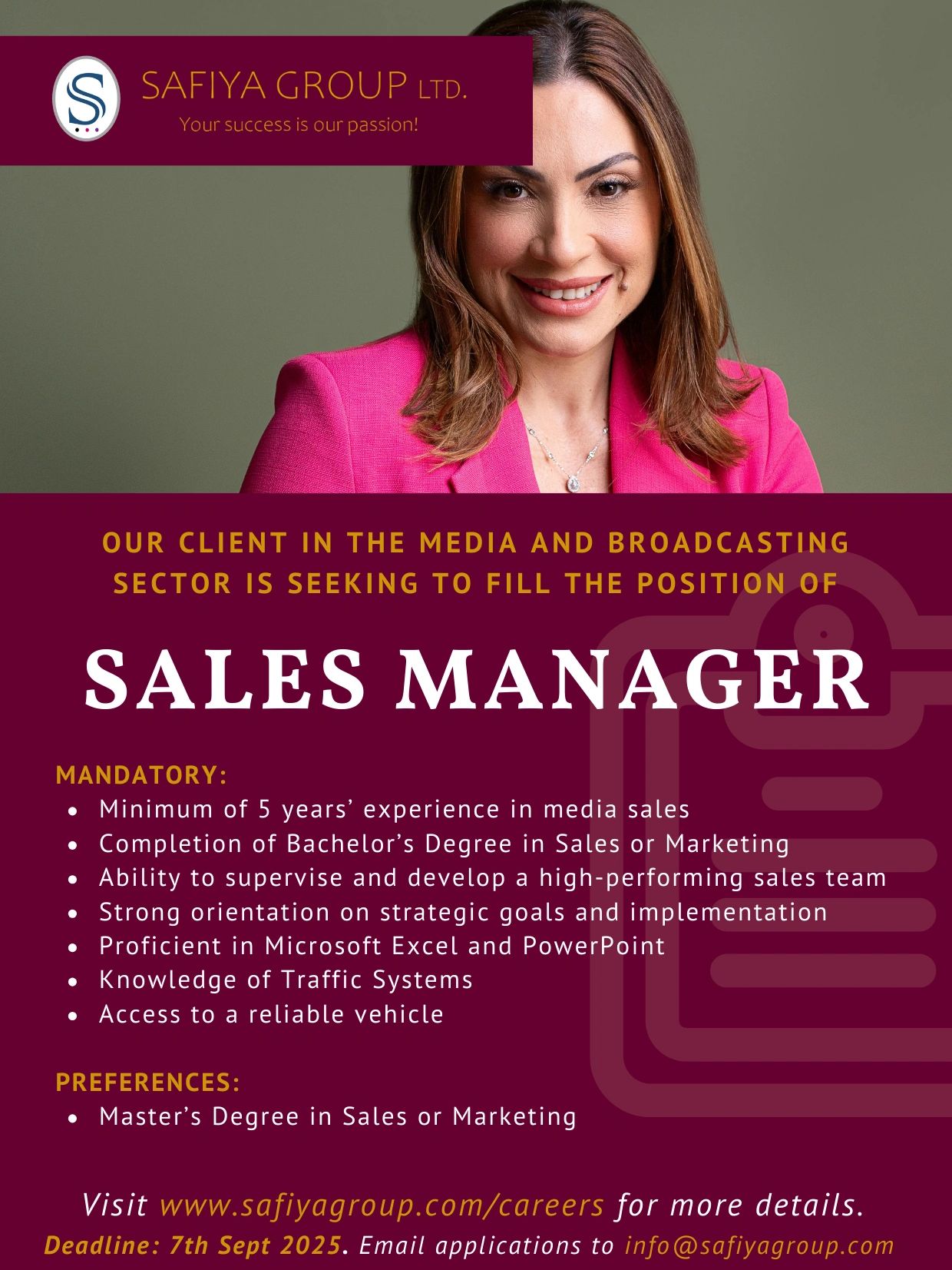 See Job Description below. Deadline for submission: 7 September 2025. Submit application to info@safiyagroup.com